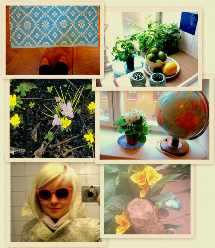 Sanoisin että nyt on kevät. Olen kävellyt tennareissa ja kiilakorkokengissä ja lunta ei enää näy maassa. Tänään mietin, että onkohan tuo talvitakki sittenkin liian lämmin ja puin ylleni kevättakin. Kuten joka keväänä myös nyt on suuri osa kolleegoistani kotona vatsataudissa. (Miksi muuten ihmiset tulevat kipeinä töihin ja tartuttavat muita? En ole ikinä vielä ymmärtänyt mikä ylepys siinä on, että kipeenä ei voi jäädä kotiin...). Olen myös nähnyt ensimmäisiä luonnonkukkia ja kotonanikin on kukkia ikkunanlaudoilla ja keittiö täynnä yrttejä. Keittiössä on myös ihanaa turkoosia kuten uusi mattoni. Tänä keväänä jopa minulla on huulipunaa.